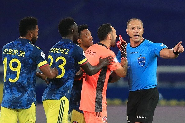 Colombia se vio perjudicado enormemente ante una muy mala decisión en Copa América frente a Brasil por el juez central Néstor Pitana, ese día el balón le tocó al colegiado y decidió no parar la jugada y Brasil terminó embocando el balón para irse arriba, toda la Selección Colombia se le fue encima al arbitro, pero no cambió la decisión y la jugada de gol fue valida y por supuesto favoreció a Brasil. Bueno, ahora resulta que en el día de ayer el mismo arbitro en el partido entre River Plate y Estudiantes le pasó lo mismo, el balón lo tocó en la mitad del campo y decidió parar la jugada, ¿pero qué diferencia hay entre las dos jugadas?, bueno, muy sencillo, la de la Copa América revestía peligro de gol, mientras que la del rentado argentino no, es lo único, pero la regla sigue siendo la misma para ambas situaciones: DEBE DETENERSE LA JUGADA y hasta los mismos panelistas argentinos del programa Diario Deportes lo reconocen.
